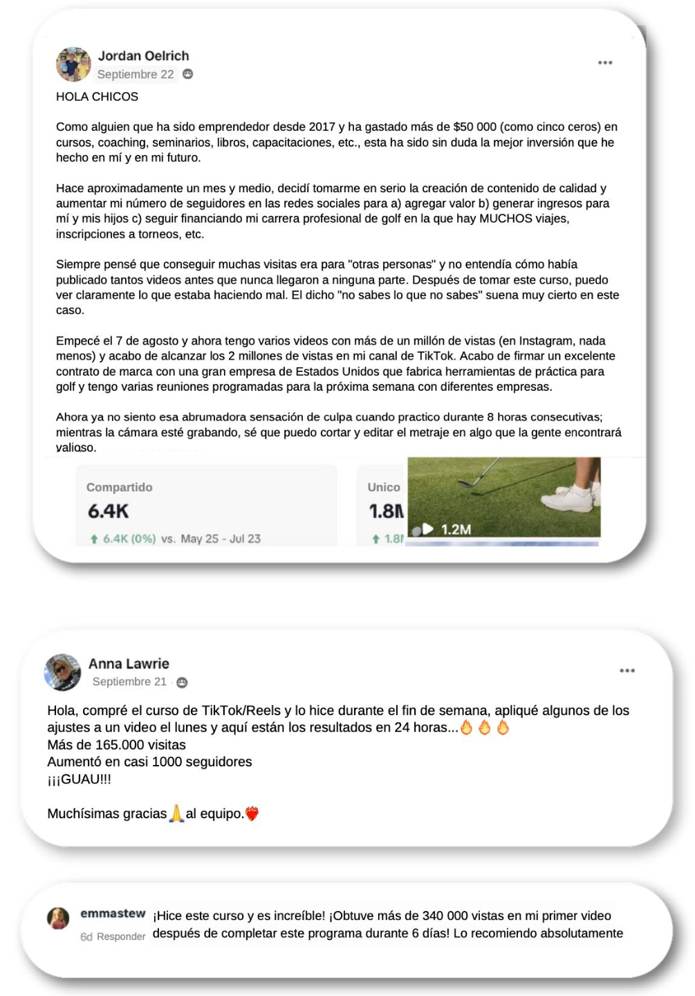Así que recopilamos todo lo que le enseñamos, y los pusimos en el Curso de Creadores de TikTok y Reels.